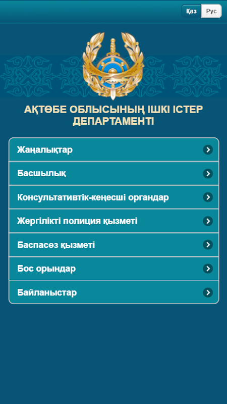 Қазақстан Республикасы Ішкі істер министрлігінің Ақтөбе облысы Ішкі істер департментінің мобильді қосымшасы,