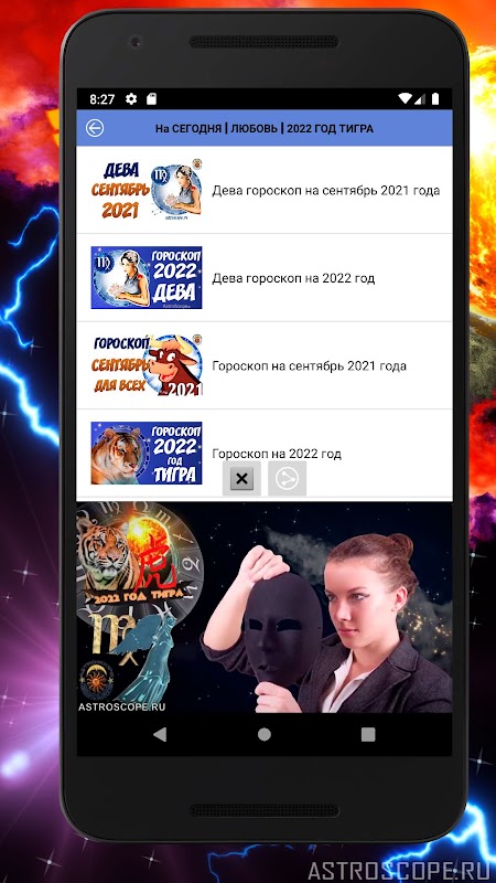 Muchos Virgo ciertamente podrán apreciar la opción útil de esta aplicación, como un video horóscopo, una presentación audiovisual del pronóstico astrológico para el período actual para Virgo (para personas en cuya vida la comodidad y la conveniencia están casi a la vanguardia). Y una bonificación más. Al instalar una aplicación gratuita en su teléfono inteligente, Virgo tiene la oportunidad de arreglar el widget del horóscopo para todos los días en la pantalla principal de su dispositivo, así como también colocar fondos de pantalla coloridos en mosaico. Para muchos Virgos, la imagen de su signo del zodíaco en la pantalla del teléfono agregará la confianza de que ahora siempre tendrá un talismán con usted que atrae la buena suerte.