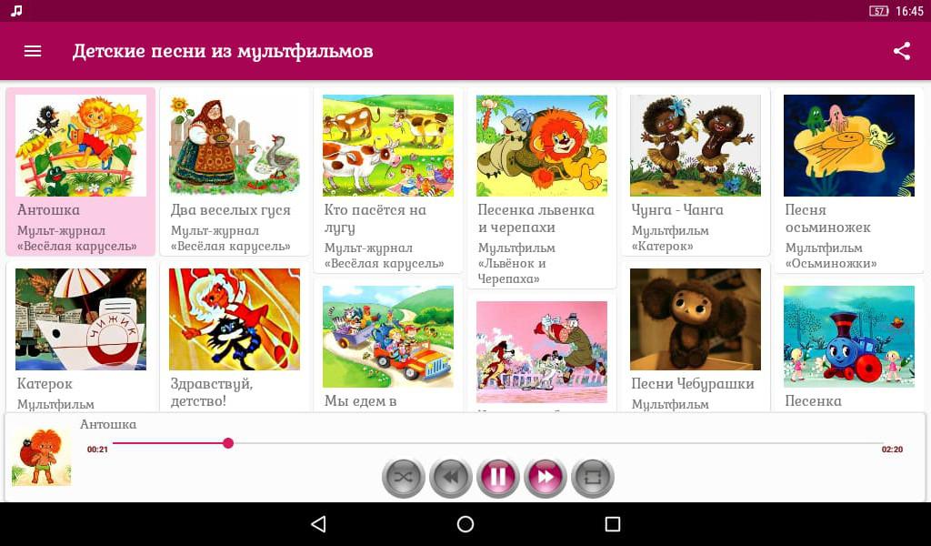 Las imágenes grandes de la lista de canciones ayudarán al niño a elegir una canción favorita.