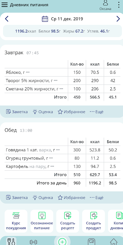 En la aplicación tiene acceso a una base de datos profesional única de KBZHU + vitaminas y minerales, de fuentes confiables: Directorio de composición química de productos alimenticios, ed. A ELLOS. Datos de Skurikhin y USDA.
