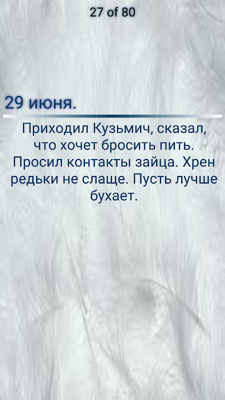 Лешей последовал примеру Домового и стал записывать свои мысли и случаи из своей жизни. Сделал но это оригинально, записывал на планшете. Юмор — в каждой записе журнала.