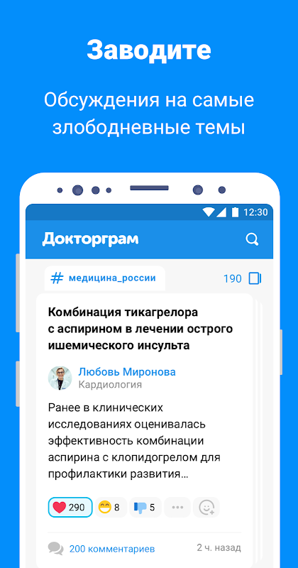 Un mensajero seguro de Doctorgram para los usuarios de la plataforma Doctor at Work está ahora a su disposición. Discuta casos clínicos, noticias médicas, órdenes del Ministerio de Salud y simplemente chatee con colegas sobre temas gratuitos en grupos o mensajes privados.