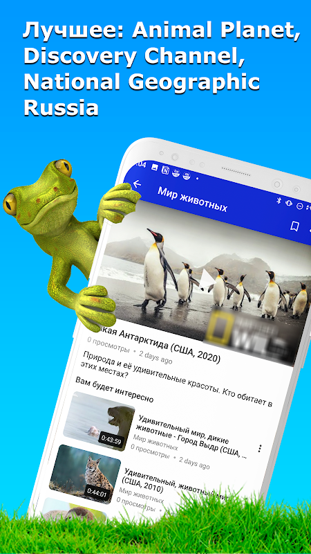 Aplicación Animal Films: documentales de animales en calidad Full HD y excelente sonido, donde puede sentirse como en un safari real. Puede aprender absolutamente todo sobre los animales, sobre su vida, comportamiento y otras características. Un mundo completo de animales, en el que puedes encontrar películas sobre animales peligrosos para el ser humano y aquellos en peligro de extinción.