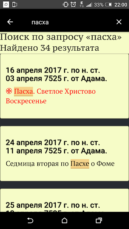 Старообрядческий календарь вычисляет дни недели, гласы, посты, подвижные и неподвижные праздники, дни поминовения усопших, приходные и исxодные поклоны на каждый день всего года, Зрячую Пасхалию на любой год. А также есть возможность поиска праздников или имен святых на текущий год.