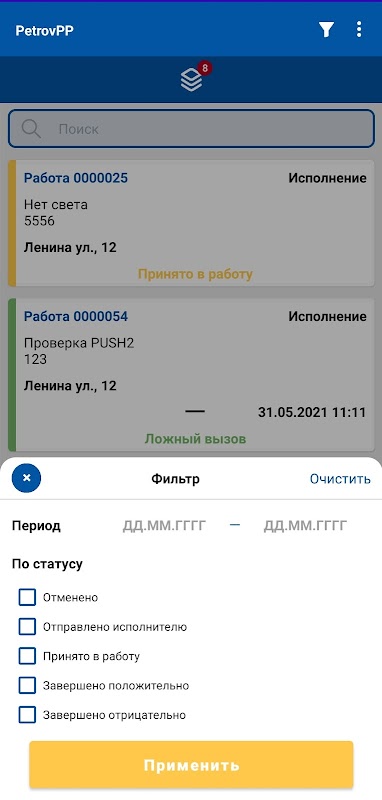 La aplicación móvil para el intérprete es un módulo del sistema DS de vivienda y servicios comunales. Le permite aceptar aplicaciones, redirigirlas y confirmar su finalización, realizar un seguimiento de las tareas, filtrarlas, adjuntar fotografías de trabajos terminados, así como documentos. Le permite ver los parámetros de la casa, incluida la ubicación de las llaves y la ubicación de los servicios públicos.