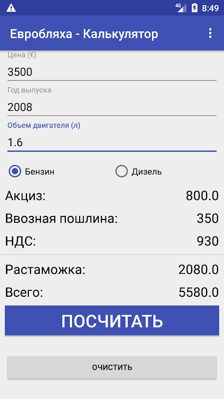 Приложение не учитывает скидку 50% на акциз в первые 3 месяца после принятия закона!
