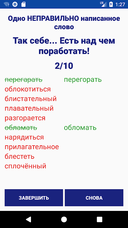 Desarrolle sus habilidades de ortografía con nuestra aplicación. Un diccionario grande y actualizado le permitirá estar listo para cualquier tarea de ortografía y para el examen.