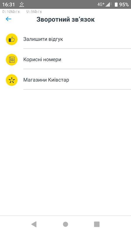 Con la ayuda de la aplicación, puede notificar al operador sobre el estado insatisfactorio de los servicios de comunicación (por ejemplo, dificultades con las llamadas o con Internet), utilizando la sección "Informar de un problema" de la aplicación.