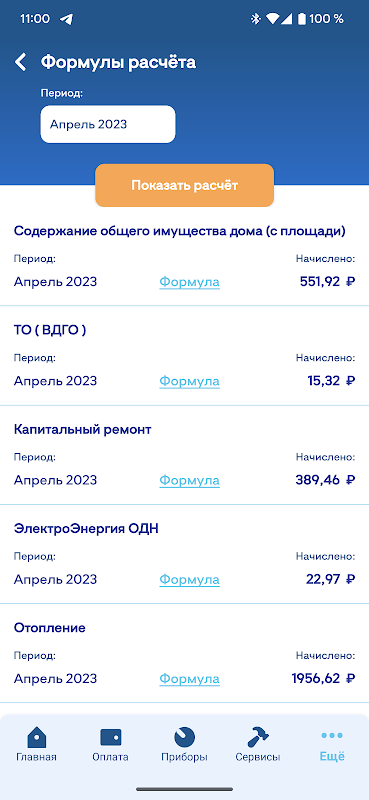 - Ver servicios conectados y fórmulas para calcular los cargos por ellos