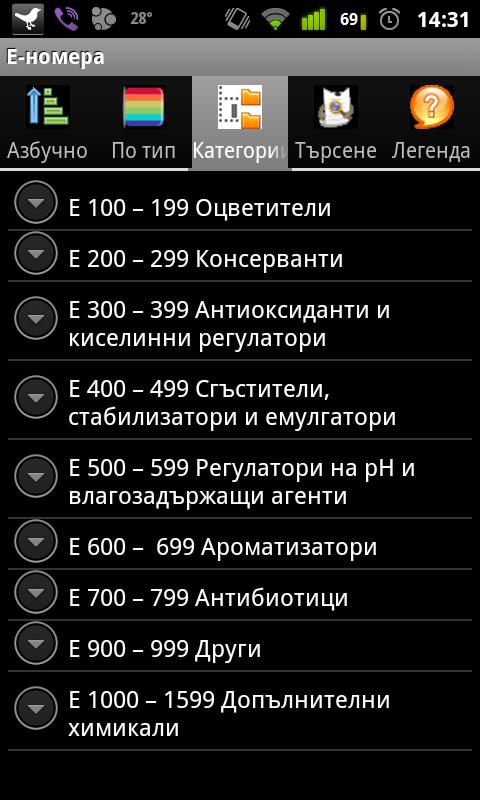 2. Търсите по тип (опасни, да се избягват от вегетарианци и т.н.);