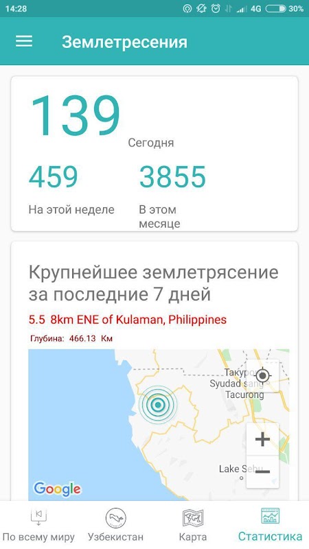 Una aplicación sobre terremotos en todo el mundo en tiempo real.