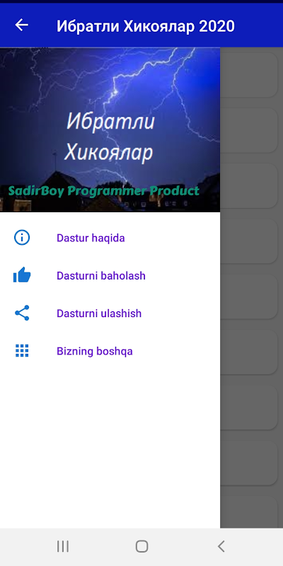 Dasturda 90 ga yaqin ibratli hikoyalar jam bo'lgan bo'lib , albatta ulardan sizlar o'zingizga kerakli saboqlarni olasizlar degan umiddaman.