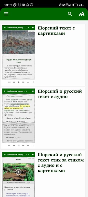 28 historias de la Biblia en el idioma Shor con traducción al ruso. El libro cuenta la historia desde la creación del mundo hasta la venida de Jesucristo.