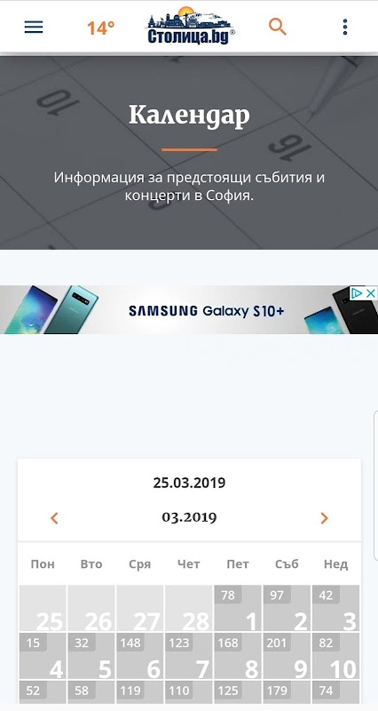 Календар - Столица.bg е вече тук. Изтеглете го и бъдете в час с всички актуални събития в сферата на спорта, културата и други интересни предложения за свободното ви време.