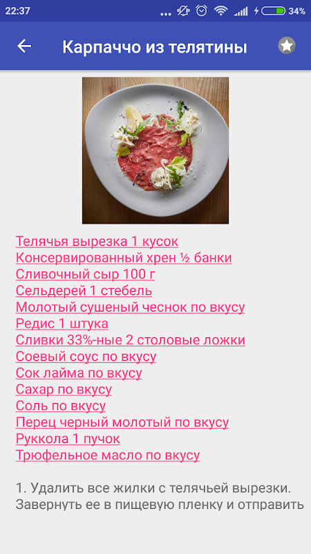Información de Карпаччо Итальянское блюдо Рецепты с фото APK