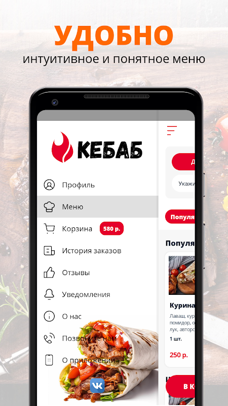 La aplicación KEBAB es una forma conveniente de pedir comida a su casa u oficina. Siempre en nuestro menú: deliciosos kebabs, shawarma y pollo a la parrilla.