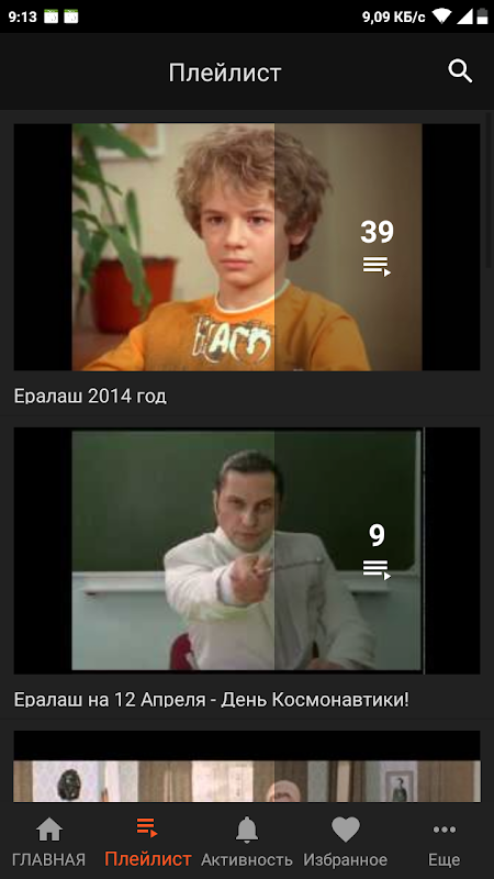 Все ссылки на видео получены с использованием официального API Youtube. В качестве источников использованы Youtube канал - "Ералаш", предоставивший фильмы в открытый доступ. Проигрывание видео происходит в плеере Youtube.