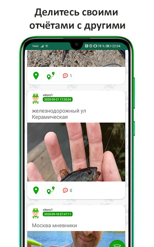 Una aplicación para verdaderos pescadores, no solo ayudará a encontrar un lugar fresco para pescar en el mapa, sino que también permitirá la creación de su propia reseña sobre el lugar de pesca donde se encuentra en este momento o donde alguna vez ha pescado. Esta aplicación también le permite llevar su propio diario de observación según la temporada, el clima, la temperatura, etc. Los datos meteorológicos en sí se cargan para el lugar donde se encuentra, o puede actualizarlos utilizando la funcionalidad proporcionada.