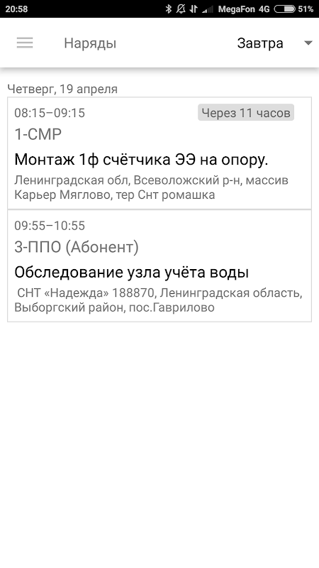 Сотрудник обслуживающей организации, используя мобильное приложение Комета.Мобильный сотрудник, всегда находится на связи с диспетчерской службой и получает актуальную информацию в режиме онлайн. Это позволяет повысить оперативность и эффективность работы сотрудников. Выполнять больше работ за меньшие сроки, не увеличивая штат линейного персонала.