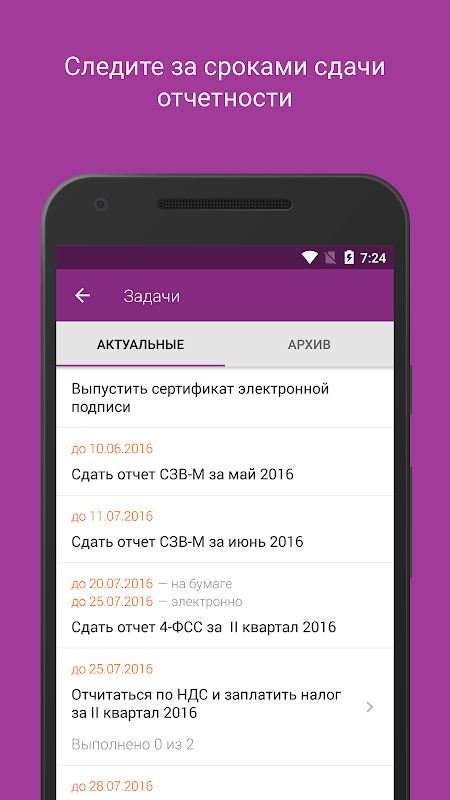Информация в приложении синхронизируется с вашим аккаунтом в Контур.Бухгалтерии и обновляется в один клик.