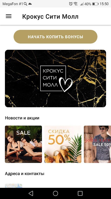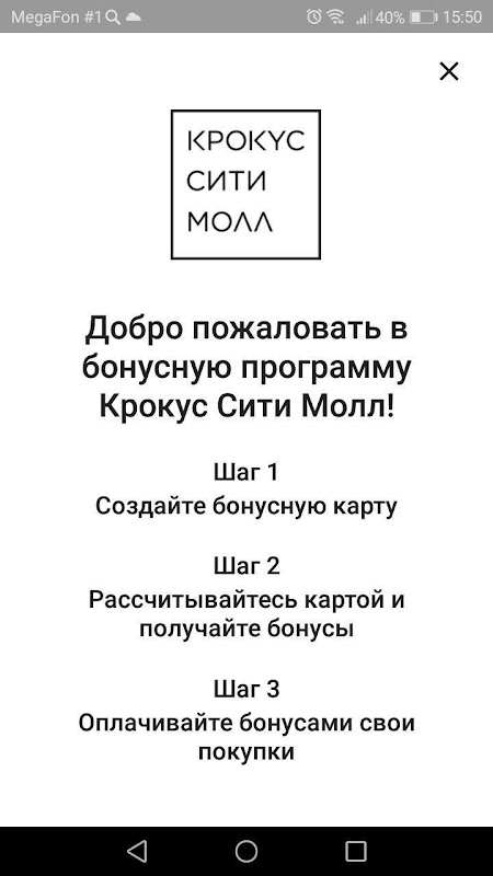 Aplicación del programa de fidelización Crocus City Mall