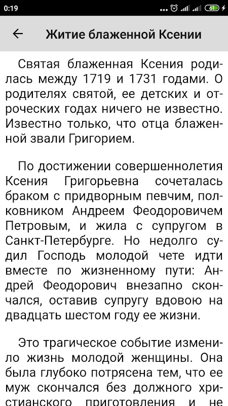 La aplicación contiene un akathist y una vida con milagros de la bendita Xenia de Petersburgo.