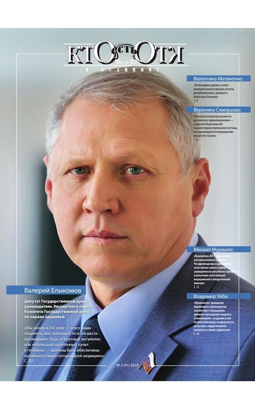 Кто есть кто в медицине – федеральный специализированный журнал для профессионального сообщества. На страницах издания представлен многосторонний диалог по вопросам реализации программ здравоохранения, развития современных медицинских технологий, совершенствования организационной деятельности, поиска эффективных управленческих решений. Журнал служит инструментом в кадровой политике, укрепляющим репутацию и стимулирующим лучших сотрудников, обеспечивающих прогресс и профессиональный успех отечественной медицины.