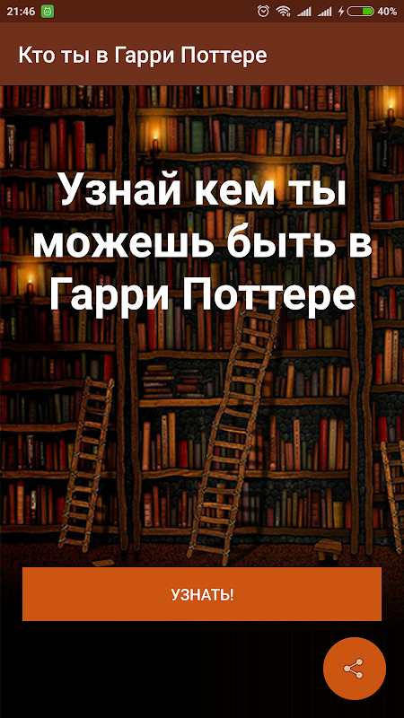 Это неофициальное приложение-тест, которое поможет тебе выяснить, какой персонаж из Гарри Поттера подходит тебе больше всего. С помощью нескольких вопросов приложение анализирует твой характер, чтобы выяснить какой персонаж наилучшим образом подходит к твоим чертам характера.