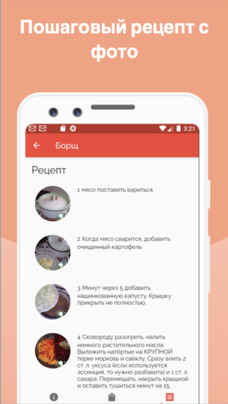 La aplicación Recetario le ayudará a encontrar fácilmente el plato adecuado y le mostrará cómo cocinarlo paso a paso. Una selección conveniente de productos, cuánto necesita para cocinar, instrucciones paso a paso sobre cómo cocinar la cena, con una foto. Con “Recetario - PP saludable de una nutrición correcta” puedes encontrar fácilmente la receta que te interesa y prepararla fácilmente.