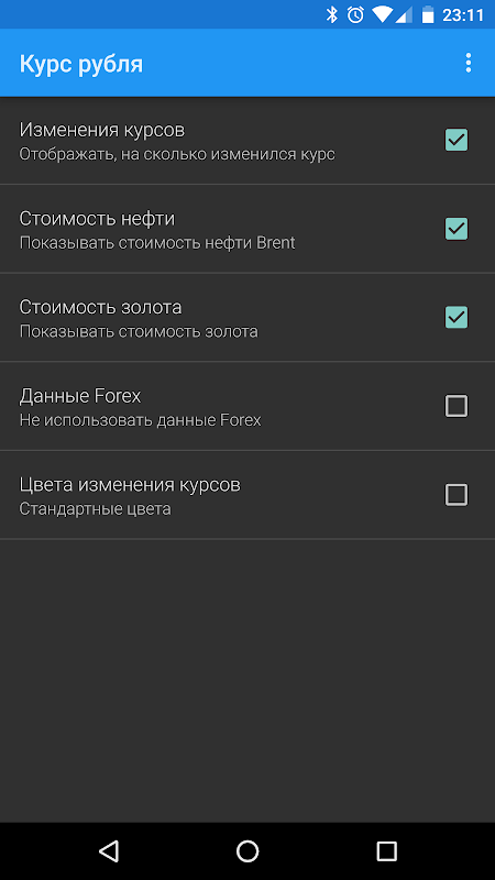 Versión libre de la tasa de aplicación del rublo - https://play.google.com/store/apps/details?id=com.arrowsapp.currencyrate
