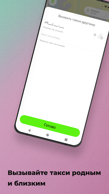 Utilice la opción “Llamar a un taxi para otra persona” en la sección “Deseos” e indique su número de teléfono. Cuando llegue el taxi, el conductor llamará al número especificado y recibirás un mensaje en la aplicación.