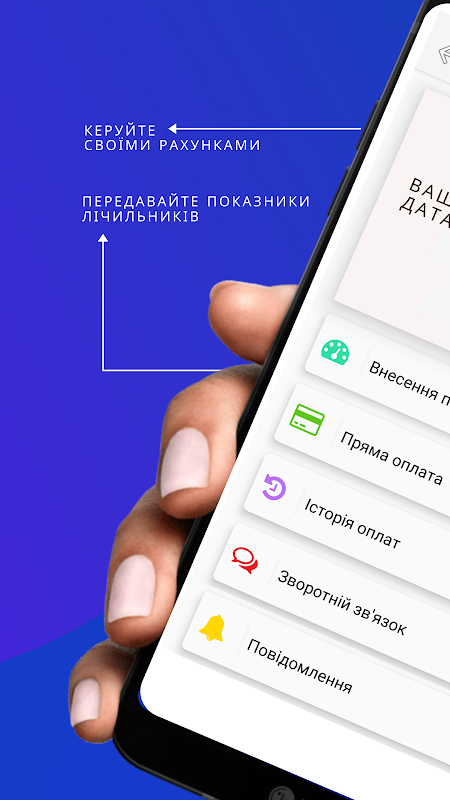 En nuestra aplicación móvil, los suscriptores de Lvivvodokanal podrán usar la siguiente lista de características: