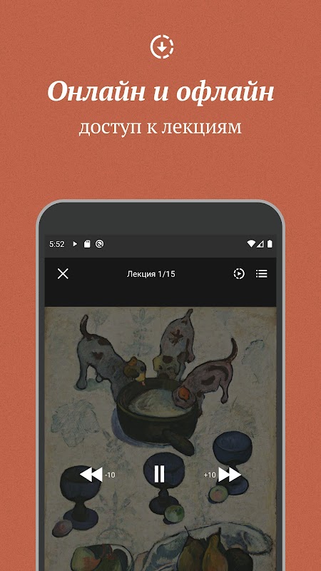 Cursos de conferencias en literatura, música, arte, filosofía, religión, historia, psicología y otras disciplinas. Conocimiento integral de los mejores profesores y profesionales. Habilidades útiles para la vida y la comunicación. Grabaciones de audio y transcripciones de conferencias, ilustraciones, recomendaciones para lectura independiente.