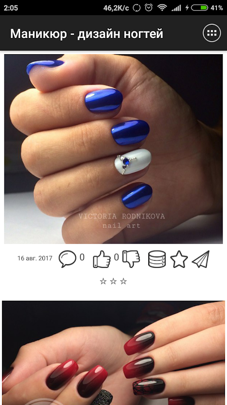 Градиент и кошачий глаз, китайская роспись и аэрография, стемпинг и акриловая лепка, инкрустация и французский маникюр, а так же остальные виды дизайнов ты сможешь посмотреть в этом приложении! Заходи и бери идеи, которые тебе понравится!