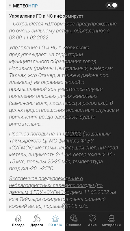 Versiones Antiguas de Метео НПР ― г. Норильск