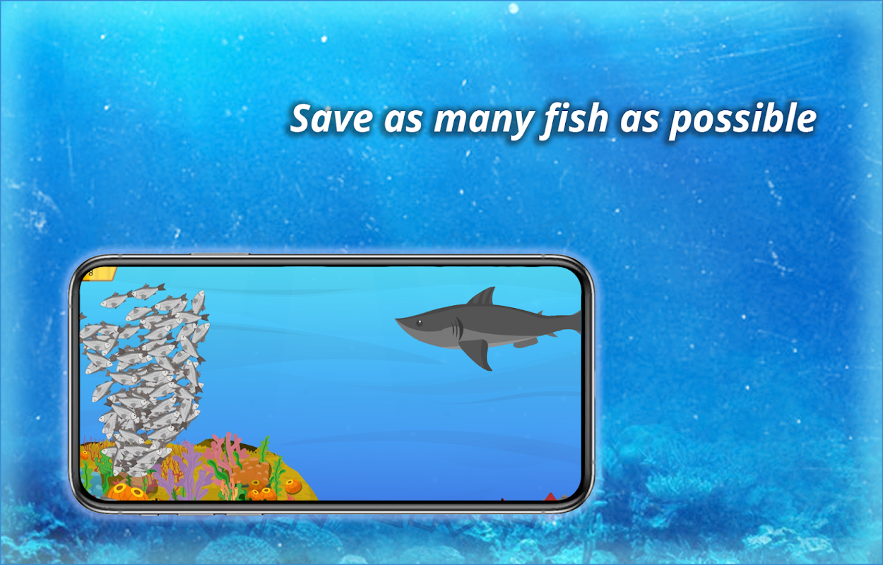 "Enjambres de Peces": controla un pequeño banco de vida marina y ayúdalos a sobrevivir el mayor tiempo posible. Diversos peces decorarán las profundidades y las bonificaciones extenderán el camino.