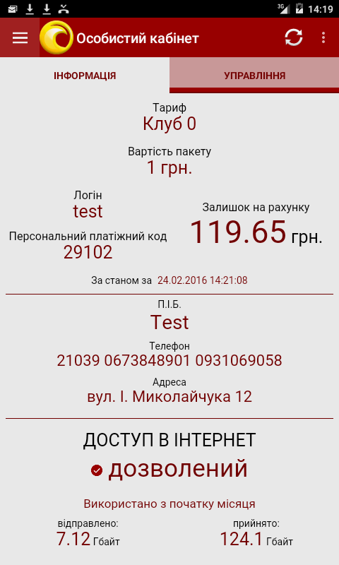 - Поповнити баланс та керувати платежами