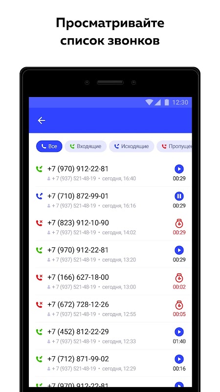 Приложение для работы с Мегафон Телефонией. Получите доступ к мегафон телефонии с вашего устройства. Записывайте входящие и исходящие звонки с мобильных. Узнайте, как работают ваши сотрудники, используя детализацию и статистику по менеджерам. Повысьте уровень контроля сотрудников до небывалых высот.