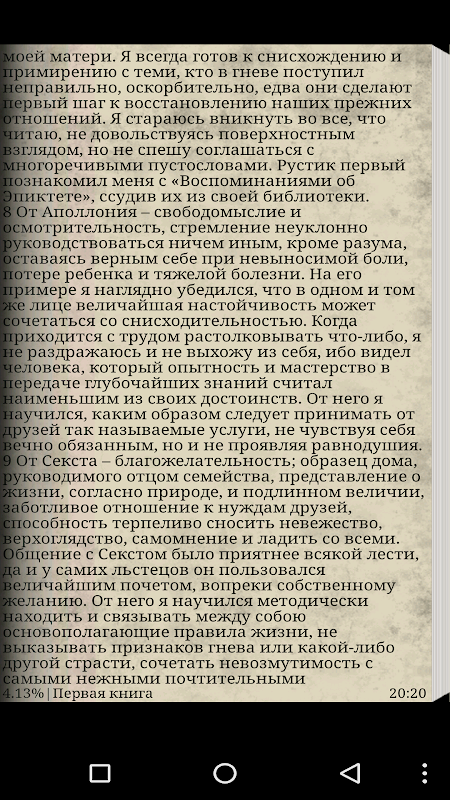 Hubo tal emperador: vivió felizmente, no abusó de los excesos, tuvo una familia fuerte, depositó grandes esperanzas en su hijo heredero, fortaleció las fronteras del Imperio Romano, no sin éxito participó en guerras continuas y rechazó el ataque de los bárbaros, murió inesperadamente en una campaña no lejos de la Viena moderna. En su tiempo libre, hizo breves notas sobre lo que estaba pensado y lo que había experimentado; No escribió en latín, en griego antiguo. El resultado fue un libro de obras maestras, que se descubrió después de la muerte del emperador, al examinar su archivo.