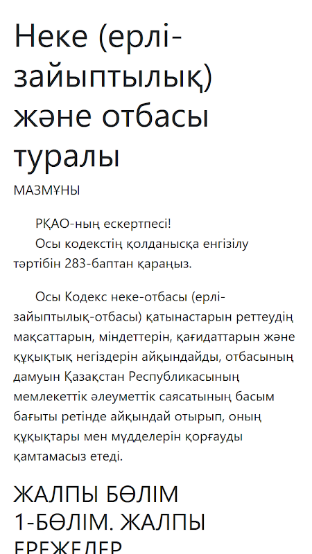 Matrimonio (matrimonio) y familia. Ley de la República de Kazajstán