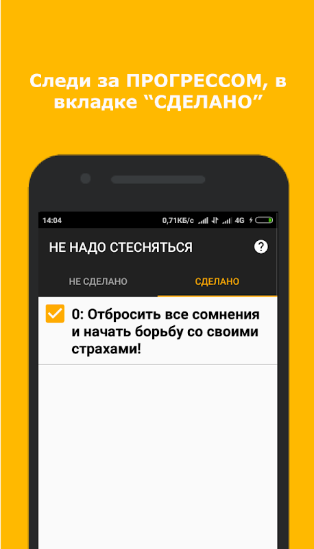 Это приложение нацелено на борьбу со своими страхами, со страхами быть отвергнутым, со страхами быть не таким как все, со страхами совершения чего-то странного (для обычных людей, но мы то с Вами не обычные)!