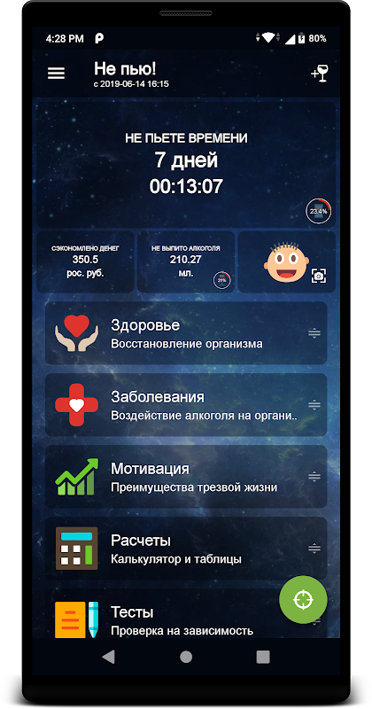 La aplicación le permite controlar el tiempo transcurrido desde el último consumo de alcohol.