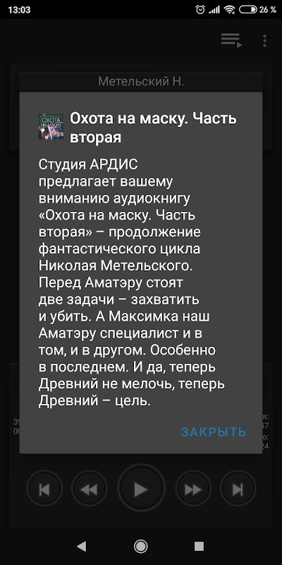 Студия АРДИС предлагает вашему вниманию аудиокнигу «Охота на маску. Часть вторая» – продолжение фантастического цикла Николая Метельского.