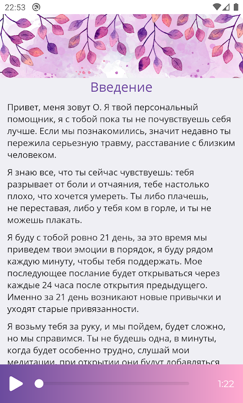 Я буду с тобой ровно 21 день, за это время мы приведем твои эмоции в порядок, я буду рядом каждую минуту, чтобы тебя поддержать. На каждый из дней я приготовила для тебя задания, выполняя которые ты гарантировано почувствуешь себя лучше.