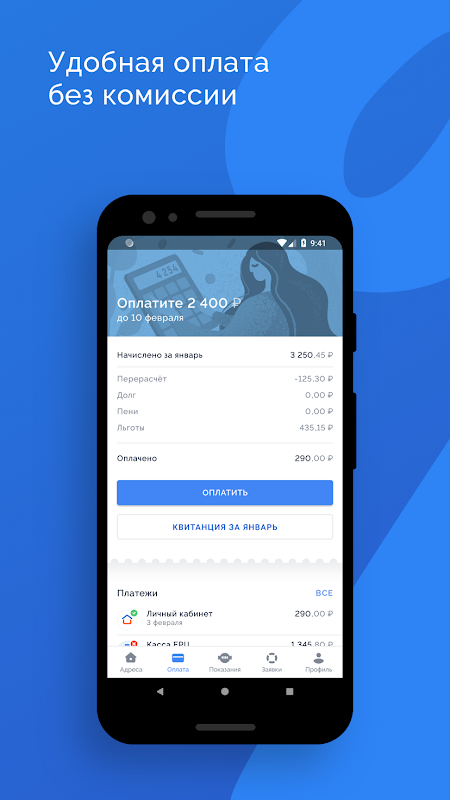 Pague los recibos sin comisión y envíe las lecturas del medidor.