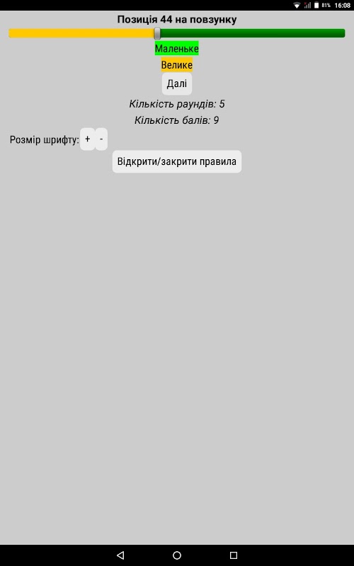 Después de comenzar el juego, selecciona el anfitrión y dale el teléfono. El facilitador aprende la posición del control deslizante que necesita adivinar. Después de decir la palabra, los otros jugadores consultan y adivinan la posición en el control deslizante. Tendrán 2 pistas: el lado izquierdo y derecho del control deslizante, como "Fácil" y "Pesado". Si el presentador dijo "Pluma", se refería a algo ligero, y esta es una especie de posición a la izquierda. Cuanto más exactamente los jugadores colocan el control deslizante, más puntos reciben. El objetivo es conseguir el máximo de puntos en un mínimo de rondas. Puedes leer más reglas en el proyecto.