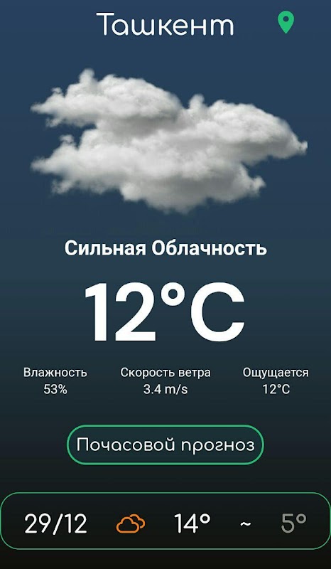 Aplicación del tiempo para las ciudades de Uzbekistán. Interfaz conveniente y hermosa con animación.