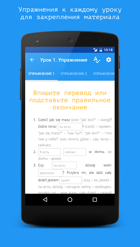 En nuestros ejercicios, debe traducir usted mismo la oración completa. Siempre puedes comprobar las respuestas. El 80% de las palabras están en la teoría de la lección o en los ejercicios anteriores, por lo que buscar cada palabra en el diccionario es completamente innecesario. Y la memorización de palabras ocurre en la práctica, cuando construye frases y oraciones de forma independiente.