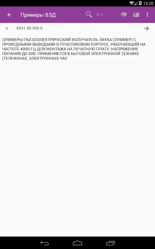 - un conveniente sistema de búsqueda de ejemplos con la capacidad de agrupar por códigos TNVED;