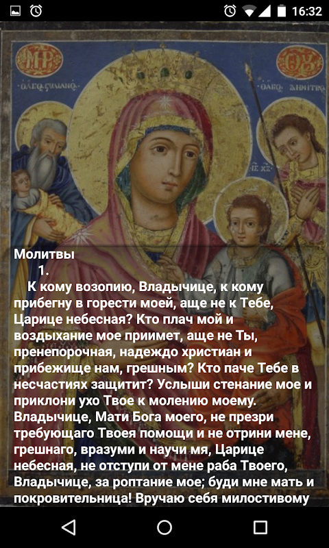 Апликација је направљена у Славу и Част Пресвете Богородице, за добро Српског, Руског и свог Прасвославног народа. Направљена је из љубави и захвалности према Православљу и Пресветој Богородици. Апликација је бесплатна и садржи православне молитве на руском и на српском језику које су преузете са српских и руских интернет сајтова. Апликација одражава ауторов поглед на Православље.